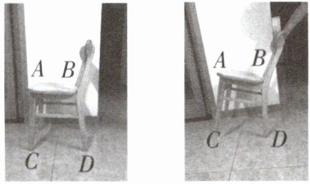 4. 如图所示,为施加一个力使椅子位置发生变化,在这个杠杆模型中的支点是( )