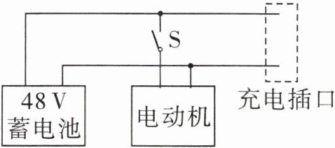 4. 电动自行车有行驶工作、蓄电池充电两种状态,局部电路如图所示,断开S后充电插口可以外接充电器对蓄电池进行充电,电动自行车行驶过程中,其电动机正常工作电压为48 V,此时通过电动机线圈的电流为5 A,电动机线圈的电阻是0.5 Ω。下列说法正确的是 ( )