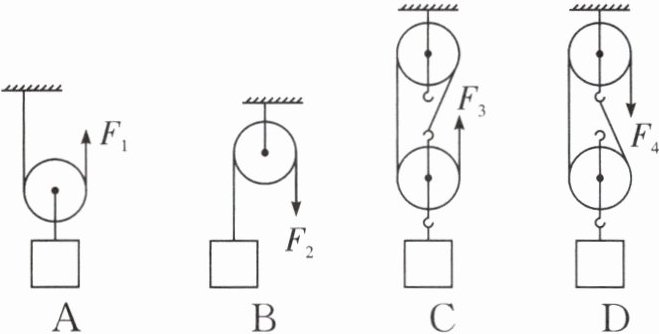 8. 用下列方法匀速提升同一重物,若不计绳子、滑轮的重力及摩擦,其中最省力的是 ( )