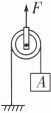 9. 如图所示,在竖直向上的力$F$的作用下,重为$10\ N的物体A$沿竖直方向匀速上升。已知重物上升的速度为$0.4\ m/s$,不计绳与滑轮摩擦以及滑轮重和绳重,则拉力$F$的大小和滑轮上升的速度分别为 ( )