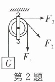 2. 如图所示,前后沿着三个方向通过定滑轮匀速拉同一物体$G$(不计绳自重和绳与滑轮之间的摩擦),所用拉力 ( )