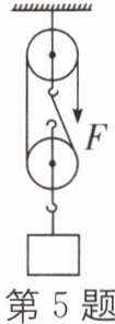 5. 利用如图所示的滑轮组匀速提升$200\ N$的重物,动滑轮重为$10\ N$(不计绳重与摩擦),则拉力$F$的大小为 ( )