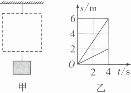 6. 如图甲所示,虚线框内是由两个相同的滑轮安装成的滑轮组。利用该滑轮组提升质量为27 kg的物体所用的拉力为100 N。物体和绳子自由端的运动情况如图乙所示,不计绳重和摩擦,则(g取10 N/kg)( )