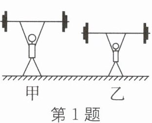 1. 两名运动员,甲比乙高,若他们举起相同质量的杠铃所用时间相等,如图,则( )