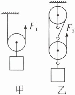 甲装置为动滑轮,承担物重的绳子段数 $ n_1 = 2 $。