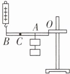 9. 小科用如图所示的装置探究杠杆的机械效率,杠杆的质量分布均匀,右端固定在O点,杠杆可绕O点在竖直平面内转动,且AC= BC= OA。
