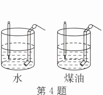 4. 如图所示,用两个完全相同的电加热器给水和煤油分别加热,在此过程中,水和煤油的温度升高一样快,由此可以判定 ( )