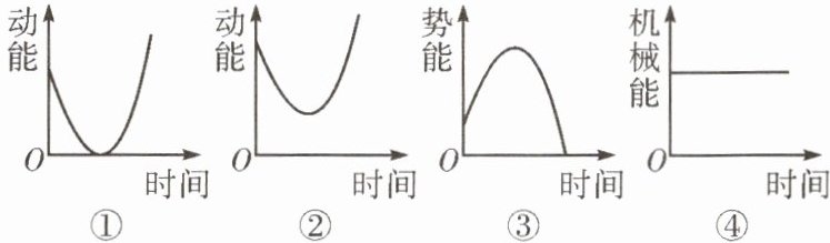 8. 投掷实心球是体育测试项目之一。若不计空气阻力,实心球从离手到落地前的过程中,下列关于其动能、势能和机械能的大小分别随时间变化的曲线中,正确的是( )