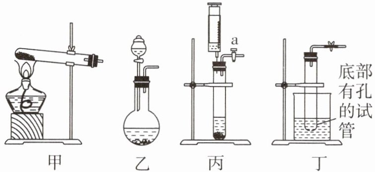 ,丙为带注射器和止水夹a的试管装置,丁为底部有孔的试管置于烧杯中的装置)
