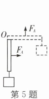 5. 如图所示,一直杆可绕O点转动,杠杆下端挂一重物,为了提高重物,用一个始终跟杠杆垂直的力Fₐ使杠杆由竖直位置慢慢转到水平位置。在这个过程中,直杆( )
