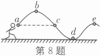 8. 小科在操场上将皮球斜向上抛出,球被抛出后的运动轨迹如图所示,a、c两点处于同一高度。则下列判断正确的是 ( )