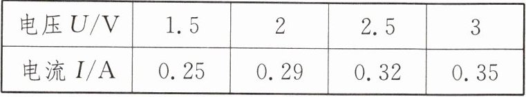 | 电压U/V | 1.5 | 2 | 2.5 | 3 |