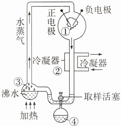 B.②内模拟了原始大气中的水蒸气凝结降雨的过程