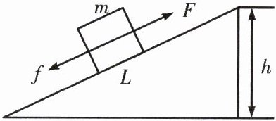 25. (6分)如图所示,有一斜面长L为10 m,高h为6 m,现用F为360 N的力沿斜面把重物G为500 N的物体从底端匀速拉到顶端。物体受到斜面的摩擦力用f表示。求: