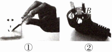 12. 小华把测电笔插入三孔插座中,如图①所示,若电路连接无误,则图中测电笔的氖管______(填“会”或“不会”)发光。小华观察家中电热水壶的三脚插头,如图②所示,她判断三脚插头的脚______(填“A”“B”或“C”)应与电热水壶的金属外壳相连。