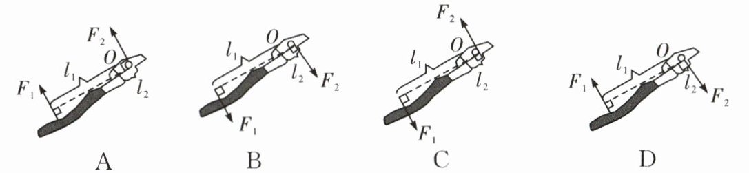5. 如图所示是钳子剪铁丝的情景,图中关于该钳子(图中深色部分)使用时杠杆的示意图正确的是( )