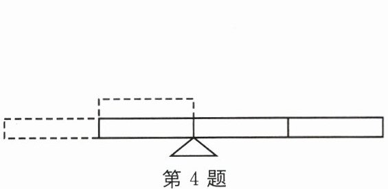 4. 如图所示的木条长L,当支点在中点时木条刚好平衡。若把左端长$\frac{L}{4}$的部分锯下,并放在左端剩余部分的上面,则木条( )