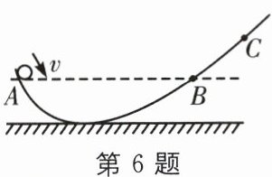 6. 如图所示,粗糙的弧形轨道竖直固定于水平面,一小球由A点以速度v沿轨道滚下,经另一侧等高点B后到达最高点C。下列关于小球滚动过程的分析正确的是( )