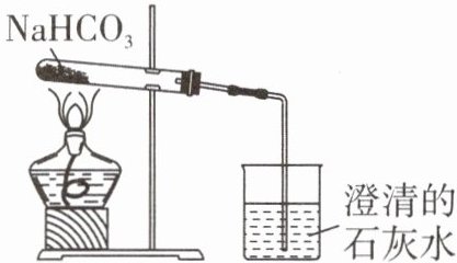 16. 小科利用如图所示装置,探究 $ {NaHCO_3} $ 受热分解的实验。