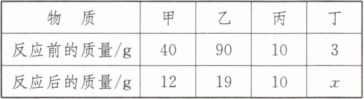 12. 在一个密闭容器中,有甲、乙、丙、丁四种物质,在一定条件下发生反应,测得反应前后各物质的质量如下表所示。下列说法不正确的是 ( )
