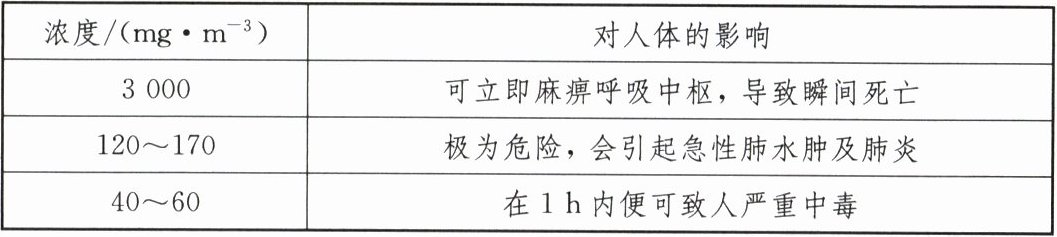 |40~60|在1 h内便可致人严重中毒|