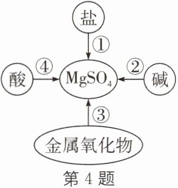 4. 某同学在学习了金属及其化合物之间的转化规律后,绘制了可以通过一步反应制取$ MgSO_4 $的思维导图,其中所选用的物质错误的是 ( )