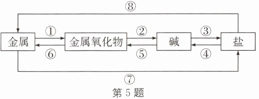 5. 现有反应 A+B→C+D:(填“酸性氧化物”“碱性氧化物”“碱”“盐”“活泼金属”中全部可能的类别)