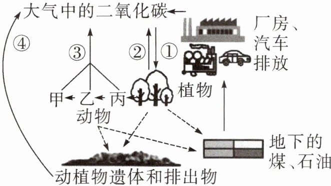 (2) 动植物遗体和排出物中含有的碳可通过④继续参与碳循环,主要是由于______的分解作用。