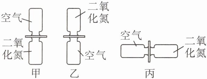 13. 将2个分别装有空气和红棕色二氧化氮气体($\rho_{二氧化氮}>\rho_{空气}$)的玻璃瓶口对口对接,中间用玻璃板隔开。抽开隔板后,通过观察瓶内颜色变化推断气体分子是否做无规则运动。对于玻璃瓶的三种放置方法(如图所示),四位同学判断正确的是 ( )