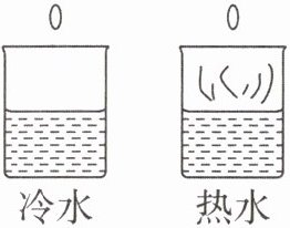 为了研究猜想①是否正确,小科等同学进行了如下实验:取来相同的两只烧杯,在其中放入质量相同的冷水和热水,各滴入一滴红墨水,如图所示。观察两杯水的颜色变化的快慢。小科等同学通过分析归纳,总结得出分子运动的快慢与物质温度之间的关系。