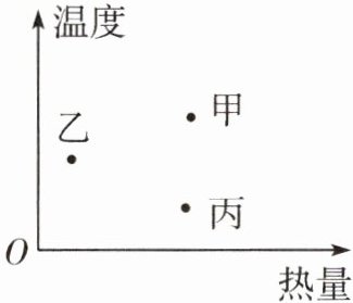 9. 现有甲、乙、丙三种初温相同的液体。其中甲、乙为质量相等的不同液体,乙、丙为质量不等的同种液体。若对这三种液体分别加热,则可根据它们吸收的热量和升高的温度,在温度—热量图像上分别画出对应的三点甲、乙、丙,如图所示,由此图像得出下列结论:①丙的比热比甲的比热大。②丙的比热比甲的比热小。③丙的质量比甲的质量大。④丙的质量比甲的质量小。这些结论正确的是 ( )