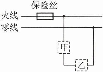 9. (2024·余姚月考)某家庭电路的部分电路如图所示,其中甲、乙两处分别装用电器和开关。对此电路,下列说法正确的是( )