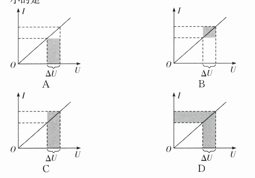 10. (2024·鹿城期末)如图是某一定值电阻的I-U图像。当该电阻两端的电压增大ΔU,其电功率增大ΔP。则图中的阴影面积大小能正确表示ΔP大小的是( )