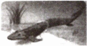 5. 通过对化石和遗传物质的研究,既可以确定生物之间的亲缘关系,也可以获得生物进化的证据。科学家在一个岛上发现了多具某种动物的化石,并通过研究化石发现这一动物具有脊柱、眼、鳃和肺,胸鳍内有五个趾骨等特征。从而推出该种动物的外形以及生活环境(如图所示)。这一发现又为达尔文的进化论提供了证据。