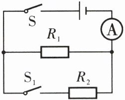 (1)当开关S、$S_1$都闭合时,通过$R_2$的电流。
