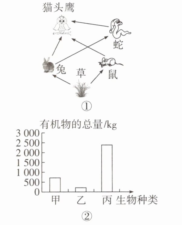 (2)若图②中甲、乙、丙分别表示“草→鼠→猫头鹰”这条食物链中三种生物各自所具有的有机物总量,则丙对应的生物是______。