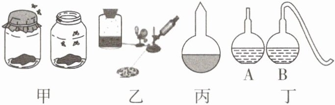 尼达姆的实验:如图乙所示,将煮沸的肉汤放入一个瓶子内,立刻用软木塞塞住。几天后,打开瓶子,发现肉汤中滋生了大量微生物。