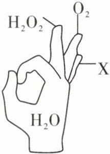 4. 如图所示是小科用手势“OK”表示初中化学反应中生成水的不同方法,要求手指上的物质分别通过某种基本类型的反应能直接生成$H_2O,$则物质X一定不是下列物质中的( )