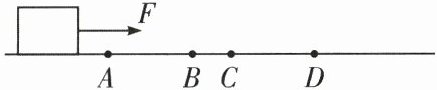 12.如图所示,物块在水平拉力F(大小未知)的作用下,在水平直线轨道上运动,其中s_{AB}= s_{CD}= 10m。已知物块在AB段和CD段分别以2m/s和5m/s的速度匀速运动,且在AB段、CD段所受摩擦阻力分别为1N和2N,则下列判断正确的是( )