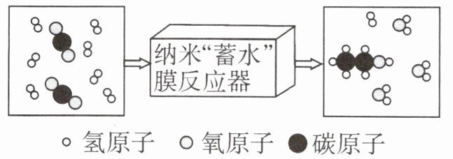 (微观示意图:左框反应物,右框生成物,中间为纳米“蓄水”膜反应器)