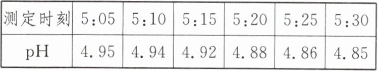 11. 为了解某地雨水的pH,课外兴趣小组用数字pH计每隔5 min对降落到地面的雨水水样进行测量,结果如表所示。已知酸雨的$pH<5.6$,则下列说法错误的是 ( )