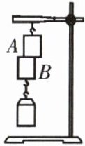 29.(5分)为了证明两铅柱接触面上分子之间存在引力,小科按照教科书图示(如图所示),使它们悬挂起来,并在下方铅柱上挂一个重物。实验中两铅柱静止悬挂,没有被拉开。已知铅柱A和铅柱B的重力均为5N,两个铅柱接触面的面积为$3cm^2,$下方所挂重物重力为30N,大气压为$1×10^5Pa。$小科由此得出结论:该实验能证明分子之间存在引力。请你利用所学知识判断该实验能否证明分子之间存在引力,并说明理由。