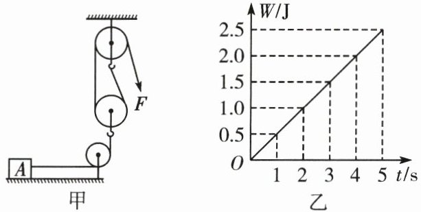 (1)由图乙可知,5s内拉力做的总功$W_{总}=2.5J$,功率$P = \frac{W_{总}}{t}=\frac{2.5J}{5s}=0.5W$。