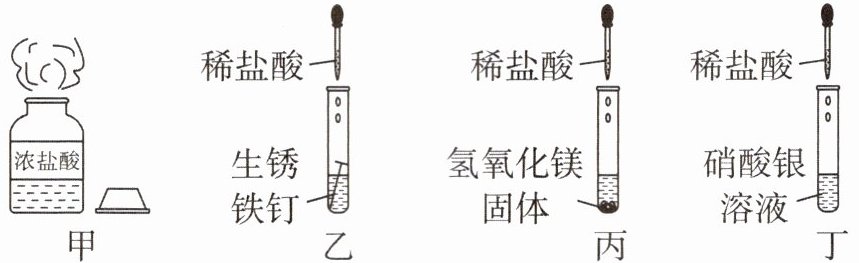 D.丁中出现白色沉淀,由此可证明盐酸中存在${H+}$