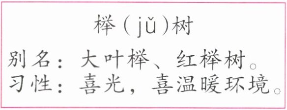 2. 温州 参观植物园时,我看到了右图的牌子,我知道榉树习性和____相似。