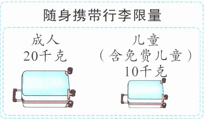 1. 通过左上图可以知道,成人可以携带______千克以内的行李。