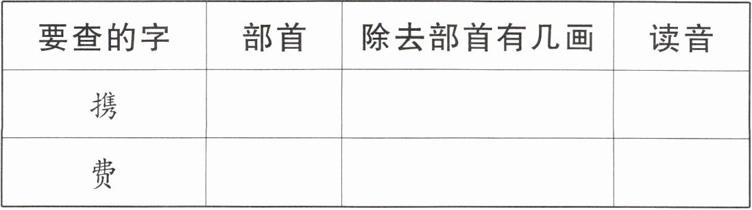 | 要查的字 | 部首 | 除去部首有几画 | 读音 |