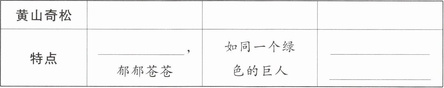 2. 短文介绍了哪几棵奇松?它们又有怎样的特点?填一填。