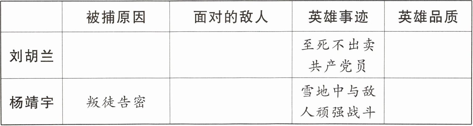 3. 对比阅读《刘胡兰》和《不屈的杨靖宇》,完成表格的填写。