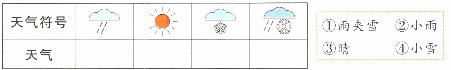 ①雨夹雪 ②小雨 ③晴 ④小雪